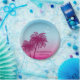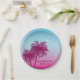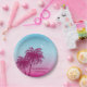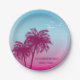 Plato De Papel Palmeras rosadas en verano tropical azul