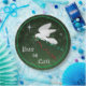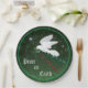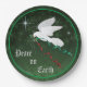 ¡Brilla a tu Fiesta Navidad con estas hermosas placas de papel para Navidades "Uno de bondad"! Una serena paloma blanca que vuela entre las estrellas llevando una rama de olivo con cintas rojas y verdes... deseando a todos...¡Paz en la Tierra! Este es un diseño de arte original del artista Kerry Miller".