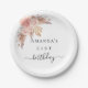 Plato De Papel Pampas cumpleaños pasto rosa de flores doradas