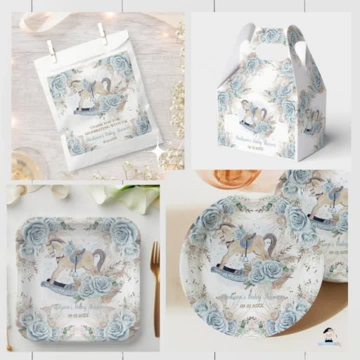 Plato De Papel Pampas Grass Blue Floral Rocke Horse Baby Shower