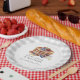 This cute "pancakes & pacifiers" gender-neutral baby shower/brunch paper plate features a white and gray gingham pattern background with pancakes, berries and a gray pacifier. Personalize it for your needs. You can find matching products at my store.