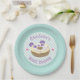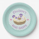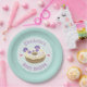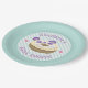 Panda morado con rayas verdes y corazones rosas lindos. Estas placas de papel son perfectas para los fiestas con temas de donut o panadería.