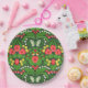 Plato De Papel Pansias rojas, pájaros y mariposas