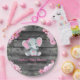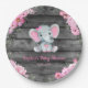 Plato De Papel Pantalones de papel rosa con flores de chica elefa