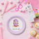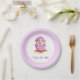 Platos de papel cortos con una polluela que nace de un huevo rosa. Perfecto para complementar la celebración de la ducha de bebé. Ilustrado y diseñado por Patricia Álvarez.