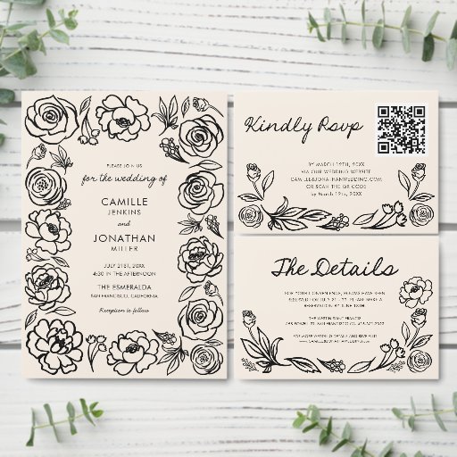 Elegant Floral Hand Drawn Wedding CollectionDiseñado por Cava Party Design