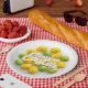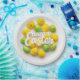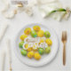Platos de papel con patrón de huevos de Pascua amarillos y verdes de moda