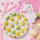 Platos de papel con patrón de huevos de Pascua amarillos y verdes de moda