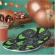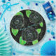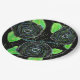 Platos modernos de papel - 9 pulgadas con una impresión de arte floral negro, con acentos verde azulados y verdes. El texto de feliz cumpleaños se puede personalizar a cualquier mensaje, y el fondo negro se puede cambiar a tu propio color favorito.