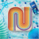 This artwork channels a retro graphic spirit, forming the letter‑like curve with parallel bands of red, orange, yellow, light blue, teal, and purple. The layered arcs flow in harmony, evoking the bold optimism of 1970s design. Set against a soft beige background, the vibrant rainbow palette stands out with clarity and rhythm. The composition balances simplicity and dynamism, creating a timeless visual that feels both nostalgic and modern.