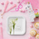 Paper Plates for a Modern Wedding. Delicate calla lilies in soft green hues are depicted against a light background, creating an atmosphere of sophistication and tranquility. The design is modern, airy, and perfect for a stylish, romantic wedding.