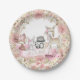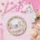 Platos de papel para baby shower de niña con animales bebés lindos sobre un bonito fondo floral de acuarela. Estos platos de papel para baby shower de bosque se pueden personalizar fácilmente con su texto.