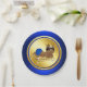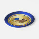 Platos de papel para baby shower del príncipe azul y dorado con adorable príncipe étnico afroamericano en un hermoso fondo azul real y dorado. Estos adorables platos de papel para baby shower del príncipe azul real se personalizan fácilmente con texto.