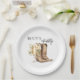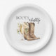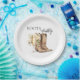 Celebre a la futura novia con este encantador plato de papel para despedida de soltera Boots & Bubbly, donde lo rústico se une a la elegancia. Con un par de botas de vaquero pintadas con acuarela y una copa de champán que florece con flores cremosas, este diseño simple pero sofisticado marca el tono para una celebración con estilo. ¡Perfecto para despedidas de soltera con estilo country-chic o western con un toque burbujeante!