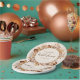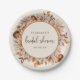 Este elegante plato de papel para ducha de novia presenta un hermoso marco de hojas de naranja quemada y terracota pintadas a mano en estilo boho acuarela, dahlias crema y beige, y hermosas rosas de color óxido sobre un fondo bronceado. Encuentre artículos coincidentes en la Colección de Ducha de Novia Otoño Romance.
