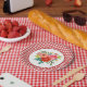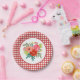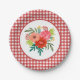 Plato de papel para fiesta floral de acuarela Gingham rojo