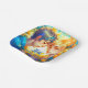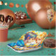 Platos de papel personalizados para boda, recepción o cena de ensayo. Niño y niña de anime abrazados rodeados de flores amarillas. Muchos detalles azules.