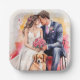 Plato De Papel Pareja de recién casados acuarela Preciosa