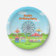Prepárese para un viaje salvaje en una fiesta de cumpleaños para niños celebrada en un parque de diversiones, parque temático o feria. Este plato de papel es una gran adición a la mesa de celebración. Los viajes se presentan en un formato simplista perfecto para un niño pequeño que celebra su cumpleaños en un parque temático o carnaval en un día de verano brillante. Disponible con productos a juego.