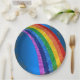 Un plato fiesta azul bonito con purpurina dorado alrededor de los bordes y un arcoíris brillante en el medio, este colorido plato de fiesta de papel sería una gran adición a una fiesta de cumpleaños de unicornio o incluso una ducha de bebé unicornio.