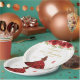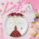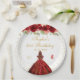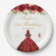 Este elegante y glamuroso plato de fiesta de cumpleaños incluye una hermosa princesa con el pelo rojo marrón y piel clara en un vestido de bola roja. El texto combina el guión manuscrito y las fuentes sans serif modernas para un aspecto elegante y sofisticado. Los arreglos florales, las mariposas y los confeti dorados crean una perfecta mezcla de rústico y moda. Gráficos de www.etsy.com/uk/shop/SunflowerDayLove