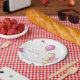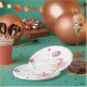 Muestra tu mesa con estos bonitos platos de papel de primer cumpleaños con un pequeño ilustracion de dragón en un fondo rosa pastel. Ilustrado y diseñado por Patricia Álvarez.