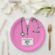 Platos de fiesta con temática médica rosa para la fiesta de graduación de la escuela de enfermería o eventos hospitalarios. Editar texto para personalizar.