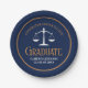 Este plato de papel de la fiesta de graduación de la escuela de derecho moda azul marino y oro personalizado presenta tipografía elegante para una clase de graduados en 2025. Personalizar con su año de graduación bajo la balanza blanca de la justicia por este gran regalo personalizado de abogado o abogado de felicitaciones.