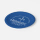 Esta placa de papel para la fiesta de graduación de la Facultad de Medicina Osteopática de personalizado azul y blanco para un DO o un médico de osteopatía presenta un símbolo médico caduceus osteopático y su nombre universitario para la clase 2025. Personalizar con tu año de graduación para una gran decoración de graduados universitarios personalizados.