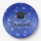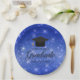 Platos de papel para una fiesta de graduación con brillo azul moda para un elegante graduado de secundaria o universitario con tu personalizado de alto nivel y clase en el centro. Personalice esta moderna decoración fiesta para un moderno graduado universitario.
