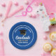Este moderno plato de papel para la fiesta de graduación de personalizados azules y blancos presenta una tipografía elegante de su nombre de instituto o universidad para la clase de 2025. Personalizar con tu año de graduación bajo el guión manuscrito de la moda y gorro negro para una gran decoración personalizada de graduados.