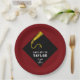 Platos creativos para fiestas de graduación con gorra negra y diseño de tassel dorado sobre fondo marrón. Edita texto para añadir el nombre de tu graduación favorita y el año.