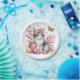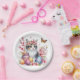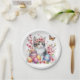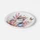 Platos de papel con un gatito con flores de cerezo y huevos de Pascua. ¡Personalizable.