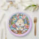 Plato De Papel Pascua feliz con conejo, huevos y flores