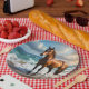 Plato De Papel **"Paseo majestuoso: Orgulloso caballo marrón en l