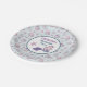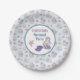 Bonitos platos de papel para los invitados a la fiesta de cumpleaños Mermaid, con una sirena, una estrella, flores y pastelitos. El diseño es personalizable y personalizado: puede cambiar el nombre y otro texto en este diseño. Tonos pastel morados y verde azulados.