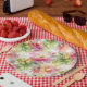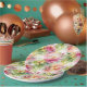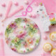 This stunning alcohol ink illustration of pastel flowers in a pink, peach, and green pattern is perfect for a spring aesthetic party. Matching napkins are available. AI assisted graphic purchased with commercial use. Artwork: DreamCafeArt
