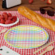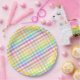 Plato De Papel Pastel Gingham Rainbow Baby Shower Yellow