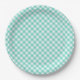 Placas de papel de color turquesa de menta pastel de gingham. Hacen grandes platos para un cumpleaños, una ducha de bebé o un picnic. Para agregar texto, haga clic en personalizar. *Tenga en cuenta que la marca de agua Zazzle que aparece en la vista previa del zoom NO aparecerá en el producto impreso final. © Rosewood y Citrus