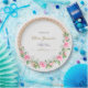 Delicate pastel pink roses and airy sprigs of baby’s breath come together in a graceful floral wreath, perfect for adding soft, romantic charm to bridal shower products. This elegant wreath design is ideal for invitations, thank you cards, favour tags, or décor, setting a gentle, feminine tone that feels fresh and timeless. Lovely for spring and garden-themed showers, this floral wreath captures the beauty of blooming love and sweet new beginnings, making every detail of the celebration feel extra special.