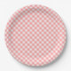 Placas de papel de color de gingham de coral de color rosa pastel. Hacen grandes platos para un cumpleaños, una ducha de bebé o un picnic. Para agregar texto, haga clic en personalizar. *Tenga en cuenta que la marca de agua Zazzle que aparece en la vista previa del zoom NO aparecerá en el producto impreso final. © Rosewood y Citrus