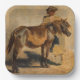 Este diseño presenta un cuadro del artista austriaco August von Pettenkofen (1822-1889). Muestra a un pastor tradicional parado al lado de un pequeño caballo marrón. El caballo está tranquilo y relajado al lado del humano. La escena vintage es un bello ejemplo de arte animal.