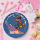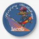Placa de papel de Fun Happy Birthday con un lindo personalizado de un niño afroamericano que patinaba en una rampa colorida. Personalizar el color de fondo y el nombre para hacer de esto una celebración amable.