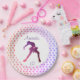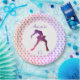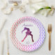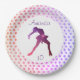 Platos modernos para fiestas de cumpleaños con silueta de patinaje artístico chica y estrellas (de rosa a violeta).
