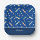 Plato De Papel Patrón de acuarela de coche de niño pequeño en azu