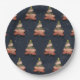 Plato De Papel Patrón de árbol de navidad azul medianoche