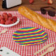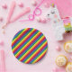 Esta obra de arte presenta rayas arco iris en un divertido patrón colorido.