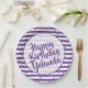 Celebra tu cumpleaños con estos divertidos platos de papel rayado morado y blanco. El diseño geométrico de moda se basa en un patrón de rayas simples, púrpura y blanca, y en un confetti. Hay un círculo blanco en el centro para el texto y una plantilla de texto para que pueda cambiarlo fácilmente a sus propias palabras, nombre o evento. Este diseño es adecuado para todas las ocasiones, incluyendo fiestas de cumpleaños, duchas, aniversarios, graduaciones y más. El diseño es también para todas las edades y todos los géneros; sólo hay que cambiar el texto para que coincida con el evento.