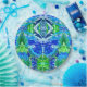 Placas de papel en una mariposa azul grande y turquesa sobre un fondo medallón arabesco, ornamentado, azul cobalto, turquesa y verde jade