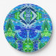 Plato De Papel Patrón de batik de mariposa y medallón en azul